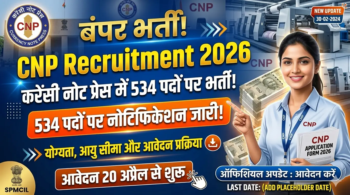 CNP Recruitment 2026: करेंसी नोट प्रेस (CNP), नासिक ने विभिन्न पदों के लिए भर्ती का...