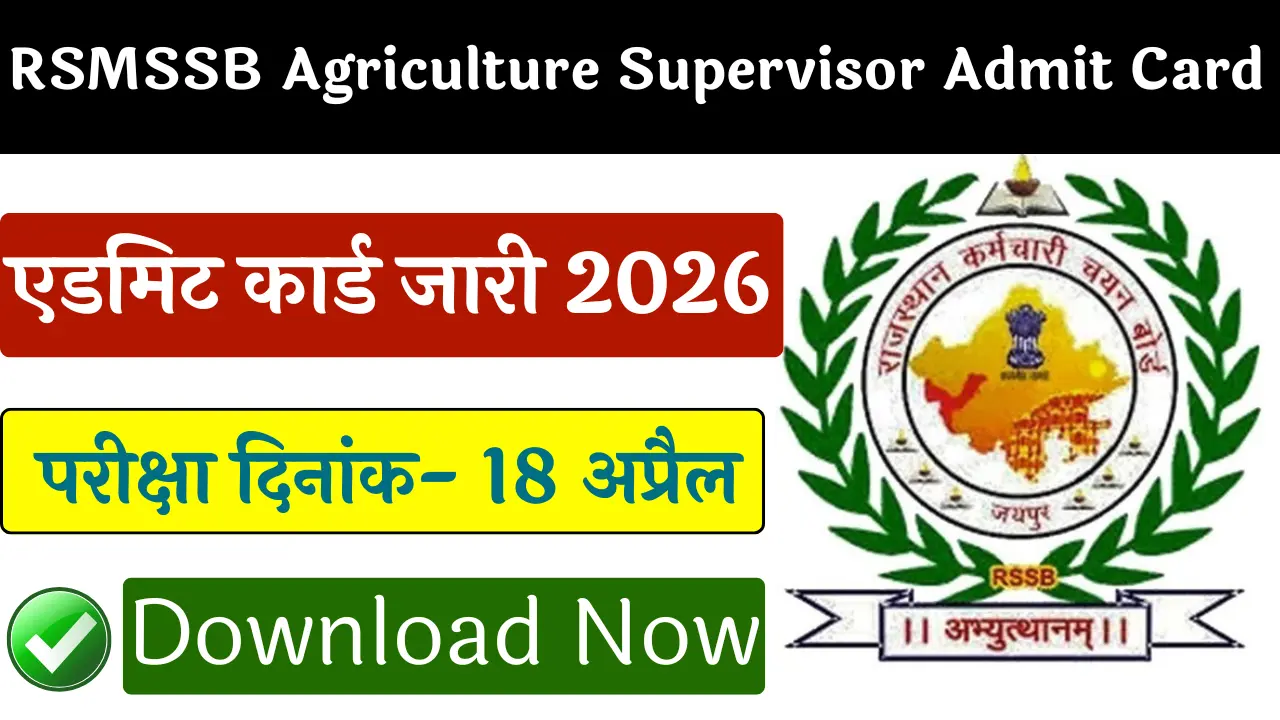 RSMSSB Agriculture Supervisor Admit Card 2026: राजस्थान में कृषि विभाग के तहत एग्रीकल्चर सुपरवाइजर (कृषि...