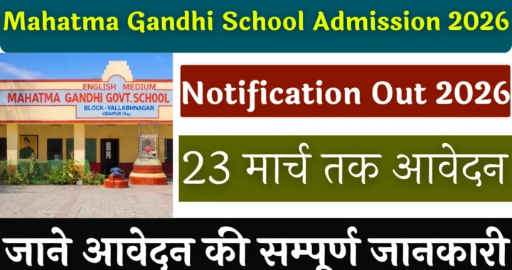 Rajasthan Mahatma Gandhi School Admission 2026: राजस्थान सरकार द्वारा संचालित महात्मा गांधी राजकीय विद्यालय (MGGS) … Continue reading Rajasthan Mahatma Gandhi School Admission 2026: महत्वपूर्ण तिथियां, पात्रता और लॉटरी सिस्टम की पूरी जानकारी