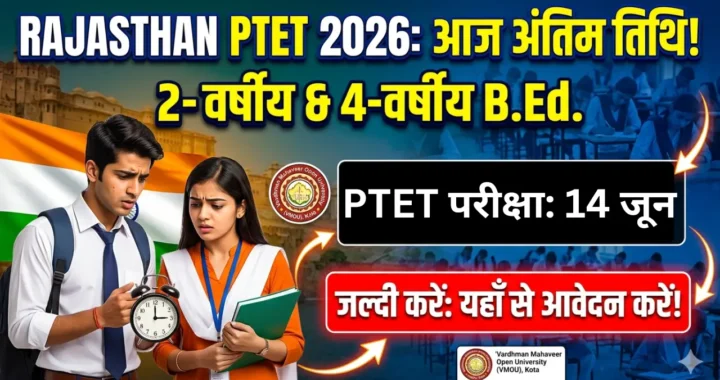 Rajasthan PTET 2026 Registration Last Date: वर्धमान महावीर खुला विश्वविद्यालय (VMOU), कोटा द्वारा आयोजित की … Continue reading Rajasthan PTET 2026 Registration Last Date: 2-वर्षीय और 4-वर्षीय बीएड के लिए रजिस्ट्रेशन का अंतिम दिन, यहाँ से करें डायरेक्ट अप्लाई