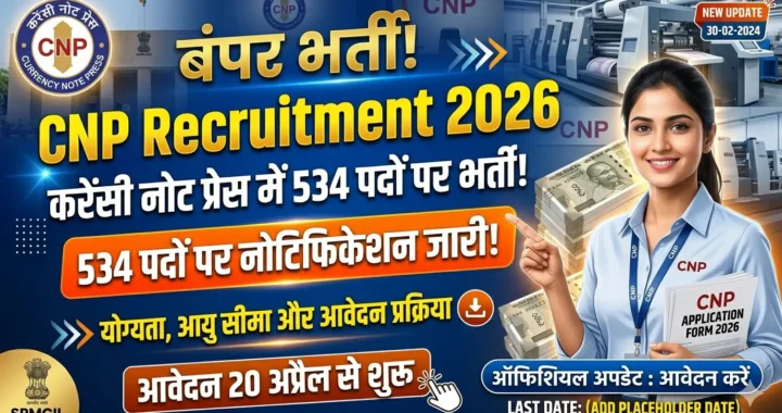 CNP Recruitment 2026: करेंसी नोट प्रेस (CNP), नासिक ने विभिन्न पदों के लिए भर्ती का … Continue reading CNP Recruitment 2026: करेंसी नोट प्रेस (CNP) में 534 पदों पर नोटिफिकेशन जारी, जानें योग्यता, आयु सीमा और आवेदन प्रक्रिया