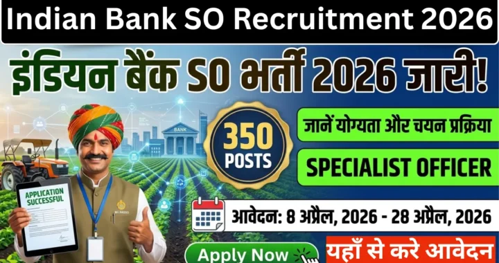 Indian Bank SO Recruitment 2026: इंडियन बैंक ने स्पेशलिस्ट ऑफिसर (SO) के विभिन्न पदों पर … Continue reading Indian Bank SO Recruitment 2026: स्पेशलिस्ट ऑफिसर के 350 पदों पर भर्ती शुरू, जानें योग्यता और चयन प्रक्रिया
