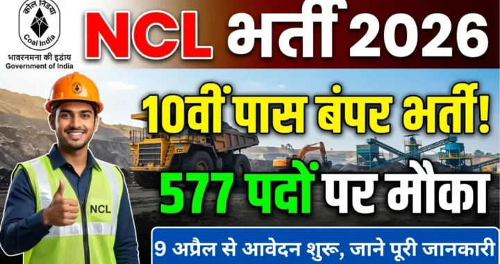 SECL Recruitment 2026: नॉर्दर्न कोलफील्ड्स लिमिटेड में 577 पदों पर भर्ती का नोटिफिकेशन जारी कर … Continue reading Northern Coalfields Limited Bharti 2026: 10वीं पास के लिए नॉर्दर्न कोलफील्ड्स लिमिटेड में 577 पदों पर भर्ती, जानें आवेदन प्रक्रिया और योग्यता