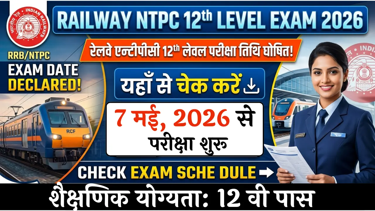 Railway NTPC Exam Date 2026: रेलवे भर्ती बोर्ड (RRB) ने NTPC के 12th लेवल अंडर ग्रेजुएट पदों के लिए CBT-1 परीक्षा 2026 का शेड्यूल आधिकारिक तौर पर घोषित कर दिया है। यह भर्ती 3058 हजारों पदों पर योग्य उम्मीदवारों का चयन करने के लिए आयोजित की जा रही है।NTPC 12th लेवल परीक्षा का आयोजन 7 मई, 8 मई, 9 मई, 13 जून, 14 जून, एवं 16 जून से लेकर 21 जून तक किया जाएगा। आपको बता दे की परीक्षा से लगभग 10 दिन पहले एग्जाम सिटी जारी कर दी जाएंगे और 4 दिन पहले विभाग द्वारा एडमिट कार्ड भी जारी कर दिया जाएगा।
