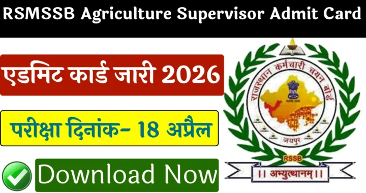 RSMSSB Agriculture Supervisor Admit Card 2026: राजस्थान में कृषि विभाग के तहत एग्रीकल्चर सुपरवाइजर (कृषि … Continue reading RSMSSB Agriculture Supervisor Admit Card 2026: 18 अप्रैल को होगी परीक्षा, जानें एडमिट कार्ड डाउनलोड करने का स्टेप-बाय-स्टेप तरीका