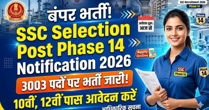 SSC Selection Post Phase 14 Notification 2026: एसएससी सिलेक्शन पोस्ट फेज 14 का नोटिफिकेशन वेबसाइट … Continue reading SSC Selection Post Phase 14 Notification 2026: 3003 पदों पर भर्ती का नोटिफिकेशन जारी, 10वीं 12वीं पास 4 मई तक आवेदन करे