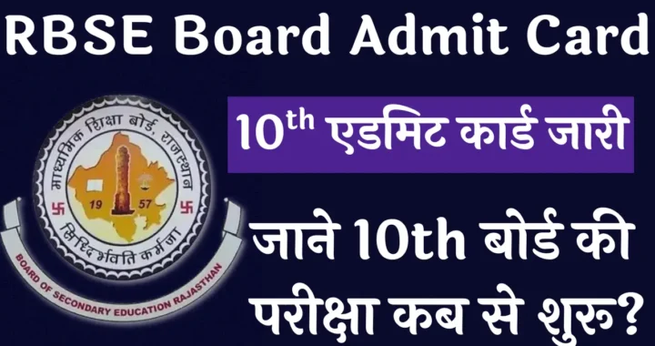 RBSE 10th Admit Card 2026: राजस्थान माध्यमिक शिक्षा बोर्ड (RBSE) की 10वीं की परीक्षा में … Continue reading RBSE 10th Admit Card 2026: राजस्थान बोर्ड 10वीं के एडमिट कार्ड जारी, यहाँ से करें डायरेक्ट डाउनलोड!