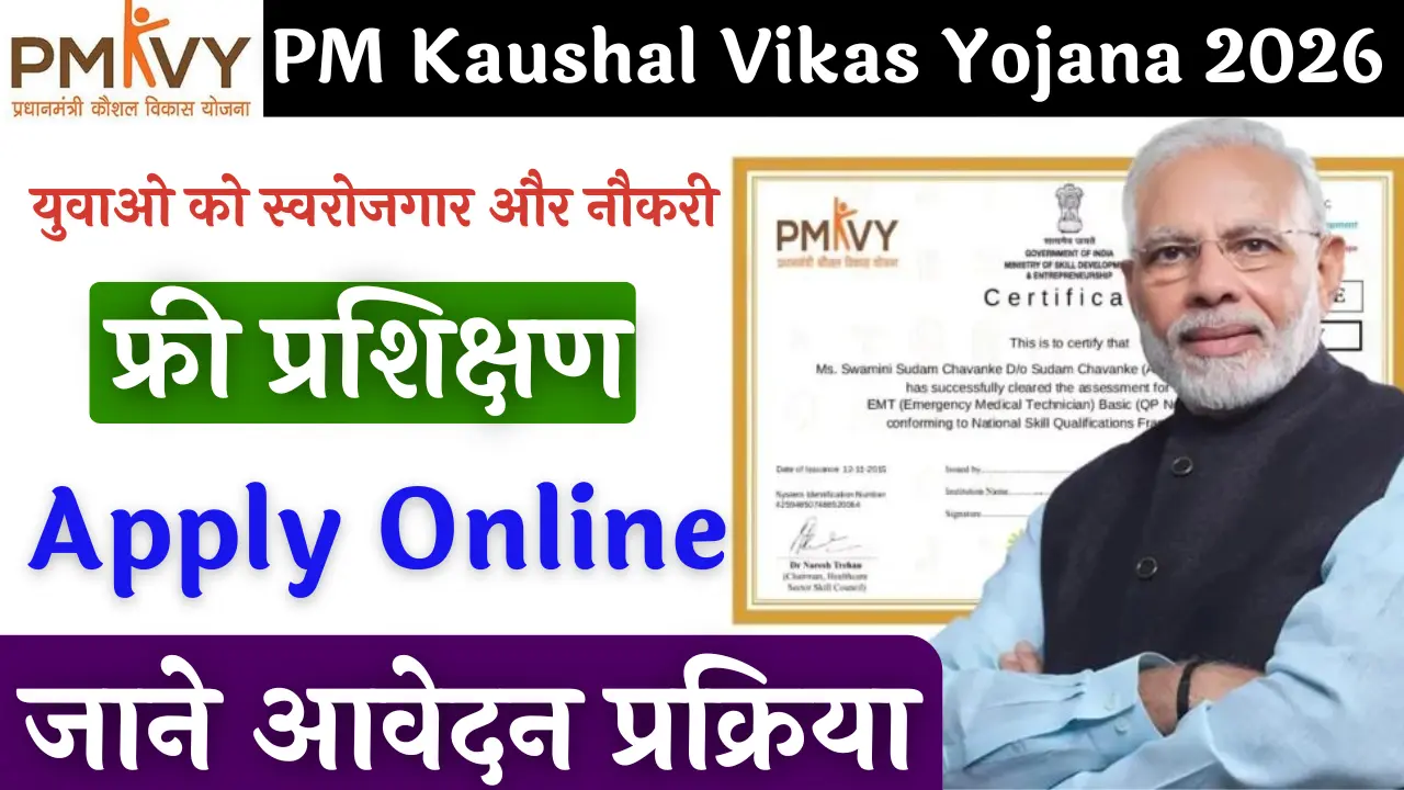 PM Kaushal Vikas Yojana 2026: आज के दौर में केवल डिग्री होना काफी नहीं है; अगर आपके पास सही कौशल (Skills) है, तो सफलता के रास्ते अपने आप खुल जाते हैं। भारत सरकार की प्रधानमंत्री कौशल विकास योजना (PMKVY) 2026 युवाओं को इसी दिशा में सशक्त बना रही है। इस योजना का मुख्य उद्देश्य देश के बेरोजगार युवाओं को उद्योगों की मांग के अनुसार फ्री ट्रेनिंग देना और उन्हें आत्मनिर्भर बनाना है।
